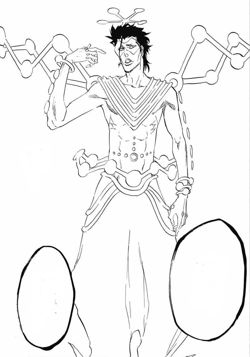 Quincy: Vollständig: Askins vollständige Form trägt den Namen Hasshein (神の毒見 (ハスハイン), Hasuhain; Japanisch für "Gottes Giftvorkoster"). In dieser Gestalt erhält er einen aus Reishi geformten Heiligenschein in Form des fünfzackigen Quincysternes sowie Flügel, welche an aneinandergereihte Moleküle erinnern, und gleichartige Ringe um seine Hand- und Fußgelenke sowie Hüften, und eine Art transparente Schutzbrille. Die Fähigkeiten seines The Deathdealing steigern sich enorm, so erlangt er automatisch und ohne zeitliche Verzögerung Immunität gegen jegliche Attacken, kann also selbst von Gegnern, deren Reiatsu sich ständig verändert, nicht mehr verwundet werden. Zusätzlich erlangt er Zugang zu weiteren starken Attacken: