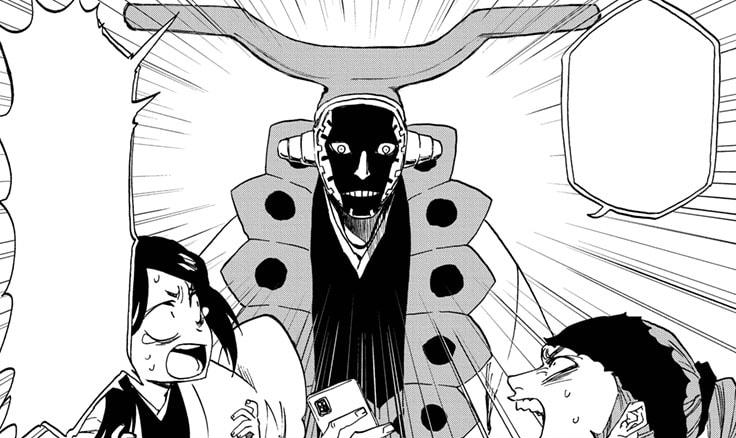 Nachdem Renji Ichigo erklärt hat, dass Urahara nach dem Quincy Blood War mit dem Shinigami-Forschungs- und Entwicklungsinstitut zusammengearbeitet hat, um alle möglichen neuen Reishi-Geräte zu entwickeln, kommentiert ein beeindruckter Ichigo seine Fähigkeiten. Plötzlich taucht Kapitän Mayuri Kurotsuchi hinter Rukia und Renji auf und verkündet, dass er eine solche Bemerkung nicht ungehört lassen kann, was die beiden erschreckt. Obwohl Renji annimmt, dass Mayuri tatsächlich hier ist, enthüllt Rukia, dass es sich in Wirklichkeit um ein Hologramm handelt, das von einem grotesken Käfer projiziert wird, der über Renji hinwegfliegt, und Mayuri stellt klar, dass es zwecklos ist, den Käfer zu zerquetschen, da andere, die er eingesetzt hat, seinen Platz einnehmen werden.[41]