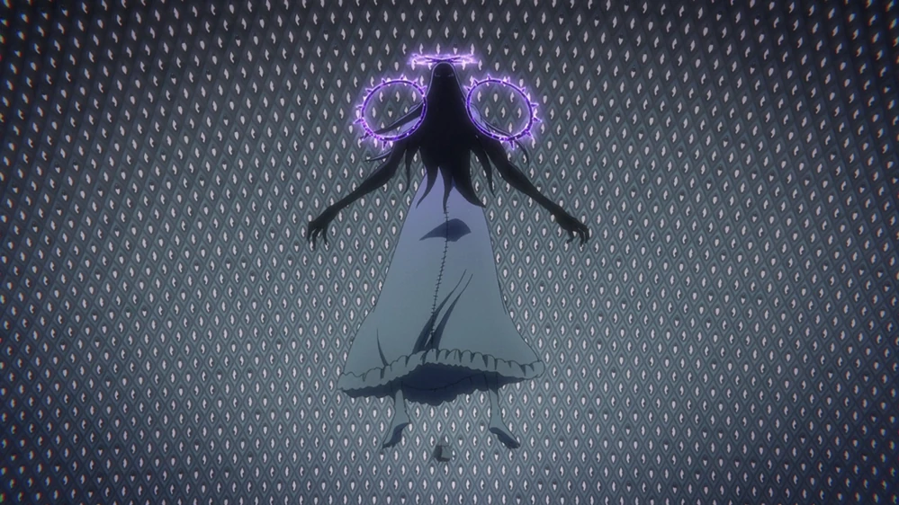 Während sie ihre Körpertemperatur langsam auf ein normales Niveau anhebt, bemerkt Rukia einen kleinen Schnitt an ihrem Finger und fragt sich, ob sie länger als 4 Sekunden am absoluten Nullpunkt geblieben ist. Rukia bemerkt, dass Äs sich immer noch bewegt und beobachtet, wie er sein Quincy: Vollständig aktiviert. Als Rukia versucht, ihn einzufrieren, bewegt sich Äs hinter sie, als Rukia bemerkt, dass sie sich nicht bewegen kann. Er enthüllt, dass seine Fähigkeit, Angst zu empfinden, nun auf Sicht statt auf Kontakt mit seinen Stacheln funktioniert. Äs erzeugt unzählige Augen um Rukia herum und erklärt ihr, dass sie seinem Blick nicht mehr entkommen kann und Angst empfinden muss. Als Rukia große Angst verspürt, schneidet Byakuya durch die Augen und rettet sie.[9]