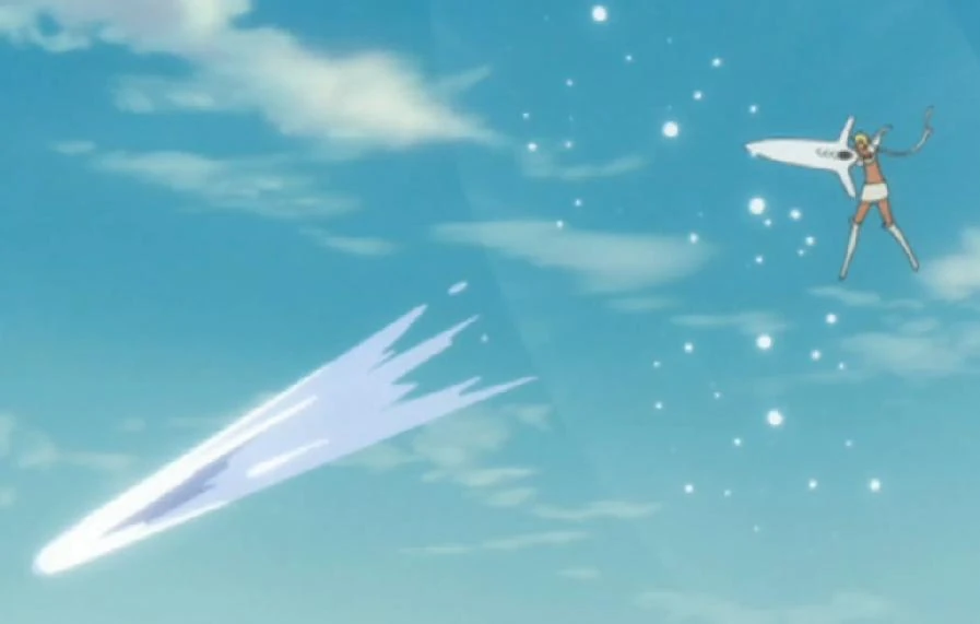 Halibel kurz vor dem Abschießen ihrer Attake Proyectil azul.
