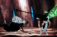 Ōetsu con las Zanpaku-tō de Renji e Ichigo.