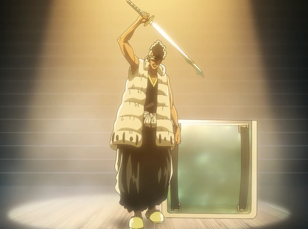 Tras esto se encuentran todavía más sorprendidos, este prosigue y dice que es preocupante que alguien con el nivel de ellos no pueda distinguir entre una Zanpaku-tō y un Shinigami, indicando que al no tener amor por sus Zanpaku-tō pierden la capacidad para distinguirlas, seguido de esto rompe la Zanpaku-tō de estos 2 y dice que la Zanpaku-tō que no es amada, es fácil de romper, y que la furia de las Zanpaku-tō se encuentra sobre ellos, y que si salen con vida, podrá reforjar sus Zanpaku-tō, luego les recuerda que él es el creador de las Zanpaku-tō, ocupando el puesto 1, 10, 9, 8, 7, 6, 5 y los otros 3 finales, y que sus espadas no son para débiles.
