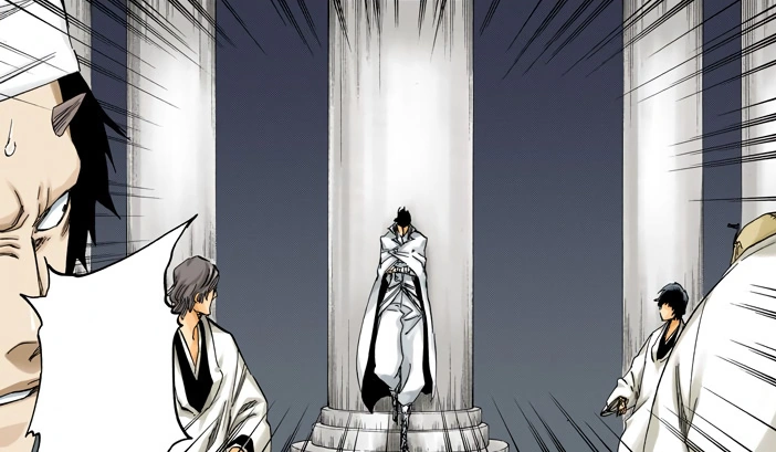 En otra parte del palacio de hielo Bazz-B aparece caminando siendo detenido por un grupo de shinigami los cuales se niegan a dejarlo continuar, Bazz-B los ataca con una fuerte corriente de llamas y les llama estúpidos ya que el Wandenreich ya invadió la Sociedad de Almas y que la cuestión no es de pasar o no, sus palabras son interrumpidas por Tōshirō Hitsugaya y su Teniente Rangiku Matsumoto, el Capitán protege a los shinigami con una gruesa capa de hielo y le da razón al Quincy, sin embargo le advierte que sus llamas no pasarán de ese lugar, y en la ultima viñeta Bazz-B les pregunta si es cierto lo que dicen.