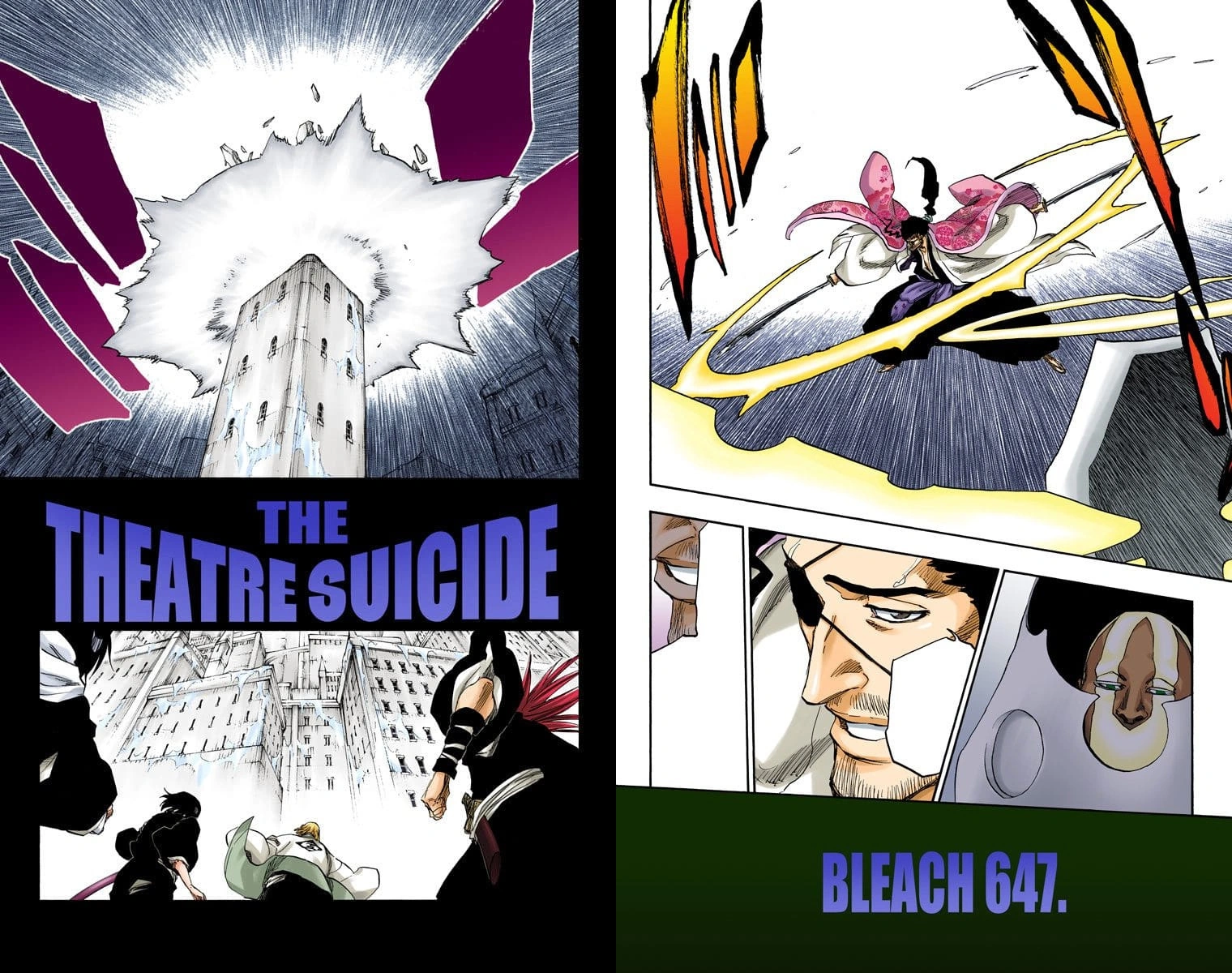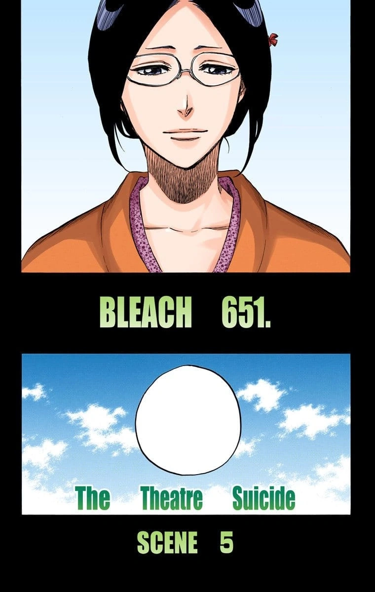 Mayuri es puesto en la capsula de recuperación y como sobraba una ponen al Capitán Zaraki en la otra entonces antes de partir y de haber hecho estos actos Yumichika e Ikkaku le agradecen por haber salvado la vida de su capitán para dirigirse luego al campo de batalla luego vemos la capsula del Capitán cerrandose y a este pensando que en este dia todos le agradecen por su colaboración y que esto le resulta una sensación nauseabunda luego se ponea pensar de que por fin logro vencer a Urahara por que creo un konpakku que puede evolucionar independientemente. Entonces La capsula se cierra y vemos a Nemuri flotando sobre el capitán Kurotsuchi.
