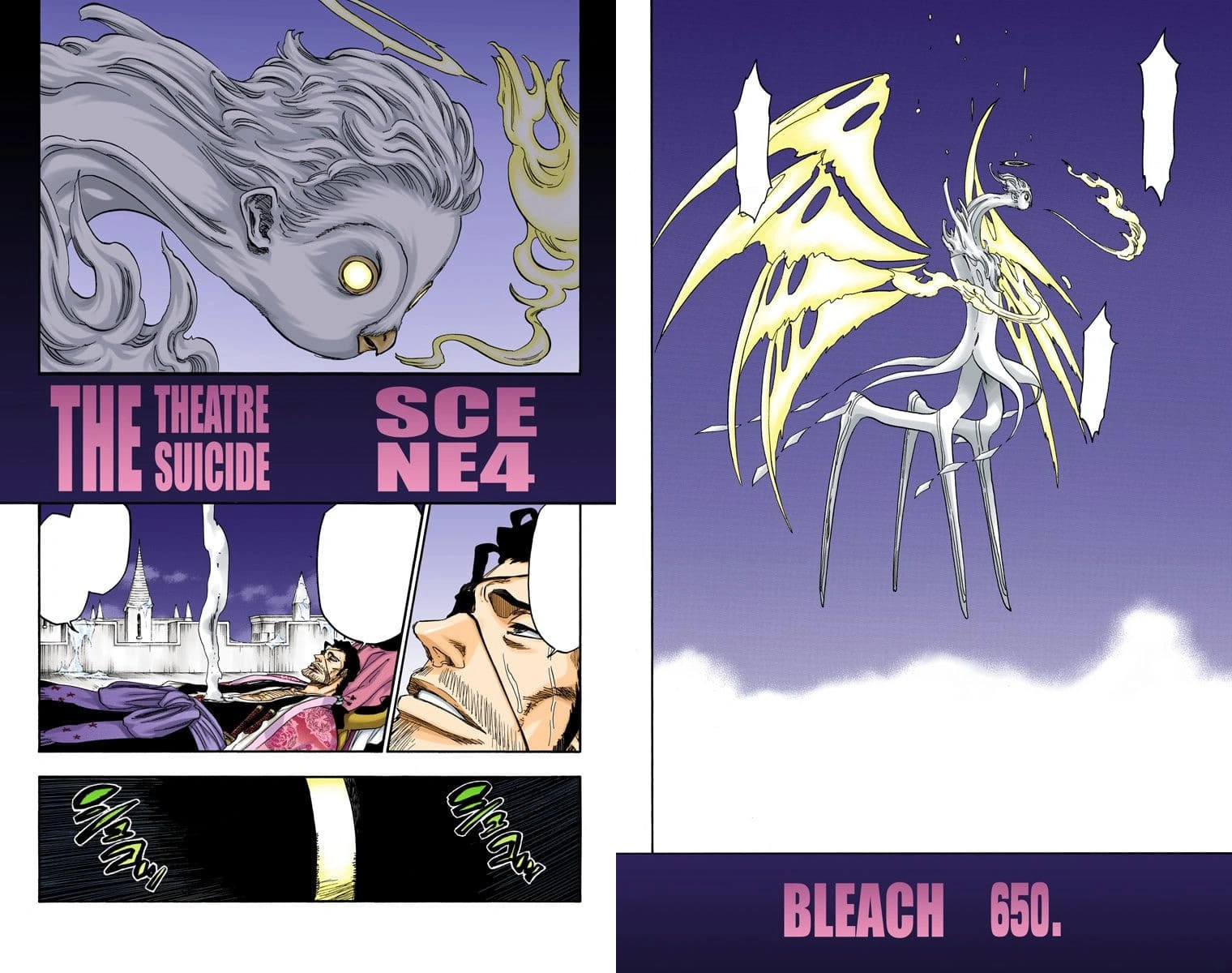 Entonces procede a liberar de si mismo un rayo de energía que destruye una gran parte del Warhelt pero Kyoraku logra escapar gracias a la ayuda de su Zanpaku-tō y esta le dice que es lo mejor ahora escapar por lo que le pide y le informa que nadie estara avergonzado si lo hacen. En eso aparece Nanao quien despierta a Kyoraku que se encontró inconsciente por unos momentos.