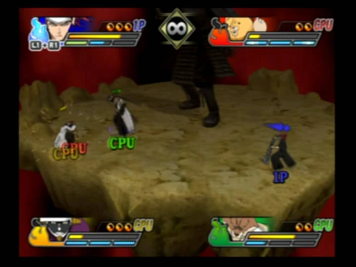 Batalla múltiple del juego, donde se aprecia las habilidades especiales de Komamura.