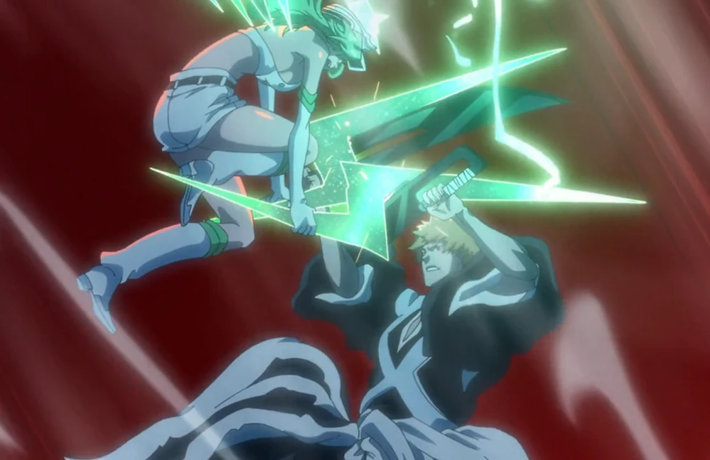 (A Ichigo): "¡Coviertete en cenizas con cinco jigajulios! ¡Maldito bastardo!"