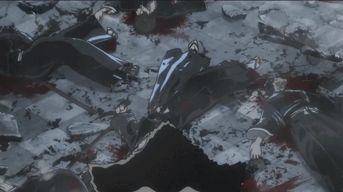 Después de esto, Driscoll se dispone a acabar con Hisagi, pero en ese momento aparece Yamamoto, desviando la flecha. Driscoll, al ver a Yamamoto, comienza a reír y declara que es una persona afortunada, ya que quería encontrarse con el Capitán Comandante. Seguidamente, Driscoll saca su medallón Quincy y amenaza a Yamamoto con asesinarlo con el Bankai de su propio subordinado.