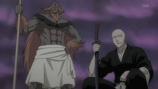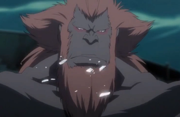 Tiene el torso desnudo y tiene una túnica blanca en forma de una falda, dejando al descubierto un tatuaje en los hombros similar al símbolo del dragón del bankai de Ikkaku. También parece haber marcas de color rojo debajo de los ojos, similar a la de Ikkaku.