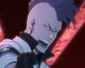 Bambietta Basterbine al verse derrotada, indica que es imposible que las bombas no pudieran explotar, e incluso antes de que pudieran hacerlo fueron empujadas de nuevo hacia ella, y tras esto termina siendo empujada hacia el suelo. Sajin, al ver que ya acabó su batalla, planea seguir hacia donde se encuentra Yhwach, sin embargo, su bankai se desaparece, este ruega que por favor aún no se acabe la técnica de transformación, e indica que no dejará que su corazón se rinda ya que debe de llegar al castillo para derrotar a Yhwach. Oojiji indica que está bien, que espera que se de cuenta que lo que tiene es sed de venganza, pero que se tranquilice ya que la venganza es para lo que existe su clan y que por fin volverá a su forma original. Sajin inmediatamente entiende que es lo que sucede, Oojiji indica que dejará su forma humana y volverá a su forma de bestia, puede maldecirlos y retorcerse pensando en la venganza, y la razón por la que él todavía vive, es porque disfruta ese resentimiento, y tras esto agradece a Sajin por hacer eso por él. Sajin se pregunta si esa es la compensación por vender su corazón a la venganza y que a pesar de ser un miembro de Gotei 13, la compensación por no considerar lo que le dijo a Kaname Tōsen es una advertencia para él; Tetsuzaemon Iba aparece y lo levanta, indicándole que van a ir a luchar contra Yhwach por Shigekuni Yamamoto Genryūsai.