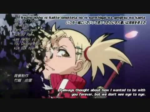 En negrita se incluyen los fragmentos del tema musical que fueron emitidos en la versión reducida presente en el anime.
