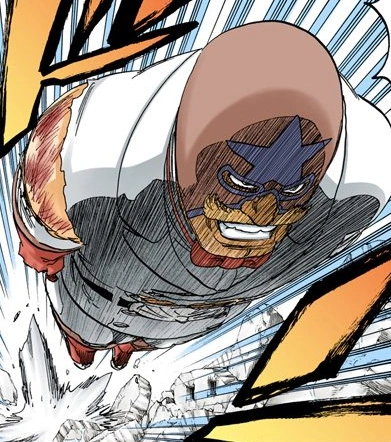 Luego vuelve a aparecer para luchar contra Hisagi, Ikkaku y Yumichika, a los cuales vence muy rápido, éste está acompañado por un sujeto llamado James, el cual celebra la victoria de Mask sobre los Shinigami, además Mask añade que fue capaz de derrotar a todos los capitanes que se encontró en el camino y se alegra por eso, en ese momento se percata de una luz que cae en el Seireitei. Cuando decide ir a ver que es esa luz que cae en el Seireitei, Hisagi lo detiene con su cadena diciéndole que no lo ha vencido, pero Mask le agarra la cadena tirándolo hacia él mismo y poniendo su brazo para que Hisagi reciba un golpe y dejarlo tirado en el piso, Mask decide darle un pisotón, pero es detenido por Kensei, quien le dice que es el capitán del teniente que acaba de derrotar. Mask le dice que no quiere pelear contra él porque quiere investigar que son la luces que han caído en el Seireitei, pero aparece Rose diciéndole que no desperdicie la oportunidad de pelear contra dos capitanes. Kensei le dice que no perderá el tiempo con él y rebela su bankai Tekken Tachikaze, Mask le da una patada a Kensei, pero él lo detiene alegando que Shuhei ha perdido contra alguien insignificante e inmediatamente le da un puño en el estómago, dejándolo de rodillas en el piso. Kensei lo agarra del cuello y le explica el poder de su Zanpaku-tō, para darle otro puño en el estómago, mandándolo a volar. James se muestra triste porque su señor ha perdido y le ruega que se levante, en ese momento despierta Hisagi y le dice a Kensei que debe eliminar al pequeño primero, en ese momento se levanta Mask y de un puñetazo derriba a Kensei y Rose, para revelar que su epitelio es la "S" de "The Super Star" .