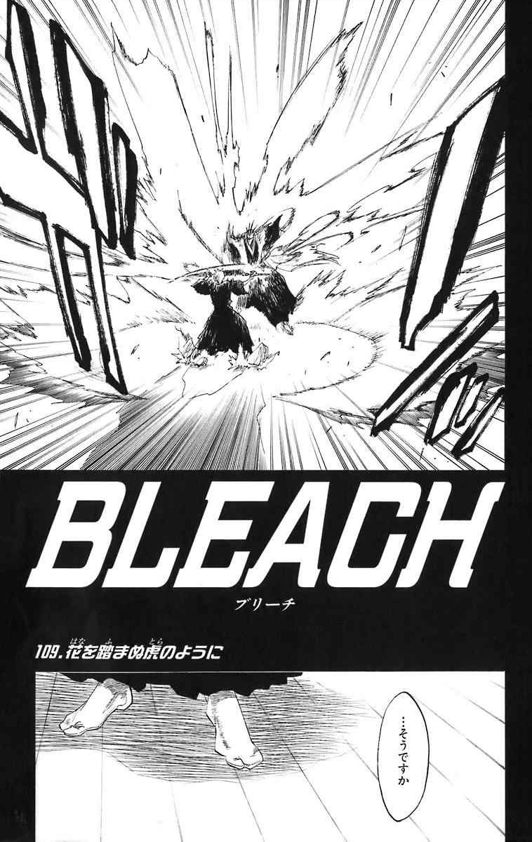 Fuera de la Sogo Kyūgo Tsumesho Tōsen y Komamura son recibidos por sus respectivos sub-capitanes Hisagi y Iba . Hisagi pide a Tōsen que le diga si Aizen está muerto. Tōsen confirma que Aizen está muerto y va a decir que la solución del problema actual es el camino más rápido a la verdad. Hisagi le pregunta si eso significa que Tōsen va a unirse a la batalla. Tōsen dice que si bien es mejor de evitar esas cosas, no parece haber otra alternativa en esta ocasión. Va a decir que si los humanos no se dejaran engañar por las emociones desagradables no habría batallas y muchas tragedias podrían evitarse. Va a decir, que odia las batallas. En otras partes, Ichigo y Kenpachi continúan su batalla, con Ichigo firmemente en la parte posterior del pie. Sin embargo, Zaraki elogia a Ichigo por sus excelentes reflejos y lo elogia por ser capaz de oír sus campanas. Kenpachi establece que se había puesto las campanas y el parche en el ojo para dar una ventaja a sus oponentes y que se pierden si Ichigo no es capaz de explotarlos. Ichigo le pregunta si Zaraki si se burlaba de él y si es por eso que Zaraki no ha llamado a su Zanpakutō. Ichigo trata de burlarse de Zaraki señalando que su Zanpakutō puede cortar Kenpachi ahora. Sin embargo, Kenpachi responde que su Zanpakutō no tiene nombre y nunca tuvo un sello en él. Él explica que la hoja de Ichigo se ve delante de la Zanpakutō de Kenpachi. Ichigo le responde que él es feliz porque eso significa que la Zanpakutō de Kenpachi no recibirá ninguna mejora más fuerte. El siguiente momento Kenpachi se lanza con su Zanpakuto hacia Ichigo,el que lo bloquea con Zangetsu, pero Kenpachi lo empuja a través de Zangetsu. Explicando que eso no significa nada que Zaraki no ha sellado su Zanpakutō porque su presión espiritual es tan grande que no puede sellarla. A continuación, le reclama a Ichigo parar el descanso y lo que hace que sea fácil para Zaraki de apuñalarlo, llamándolo un tonto para relajarse porque pensaba que podía ganar. Como Ichigo cae de rodillas, Zaraki declara su decepción.