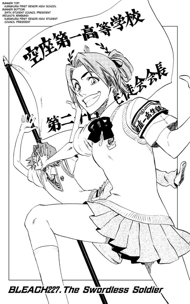 À la maison de Keigo Asano, Yumichika se moque du tee-shirt que la sœur d’Asano fait porter Ikkaku. Rangiku arrive sur ses entrefaites et se moque de lui. Ikkaku réplique que, comme il est logé et nourrit gratuitement, il ne va pas râler pour un simple tee-shirt. Matsumoto dit qu’elle se plaint de tout et, alors qu’Ikkaku demande qui est la pauvre personne qui la loge, Yumichika l’informe qu’il s’agit d’Orihime et qu’il la plaint. Keigo revient alors et, voyant Matsumoto, il lui saute dessus mais elle le met KO au bout du 2nd coup. Puis, c’est la sœur de Keigo qui arrive et s’énerve de voir une autre fille près d’Ikkaku. Ce dernier demande à Matsumoto d’accomplir sa mission avant de quitter les lieux.
