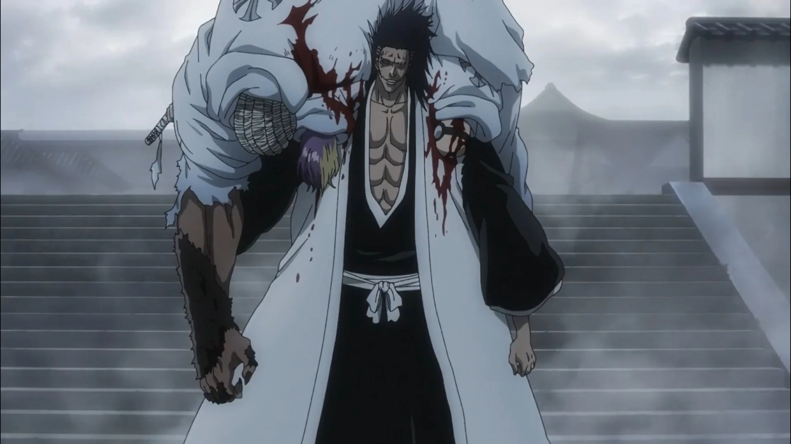 Kenpachi, accompagnant Mayuri dans le Dangai.