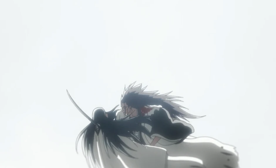 Ichigo, attaquant la poitrine exposée de Kenpachi, ne cause aucun dommage, à sa grande confusion. Kenpachi, déçu, commence à dégainer son Zanpakutō en disant à Ichigo que c'est son tour et de ne pas mourir trop vite. Lorsque la main d'Ichigo commence à saigner, Kenpachi, lui demande pourquoi il est surpris que son épée ne puisse pas le couper puis pousse Ichigo en arrière, en utilisant son bras contre sa lame. Kenpachi, explique à Ichigo pourquoi son épée ne peut pas le couper car les combats de Shinigamis sont des chocs de Reiatsu et que si tu n'as pas le niveau pour lutter, peu importe la taille de ton sabre, c'est le plus faible qui recevra les dégâts.