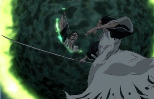Kenpachi utilisant le Kendô pour tuer Nnoitra Gilga.