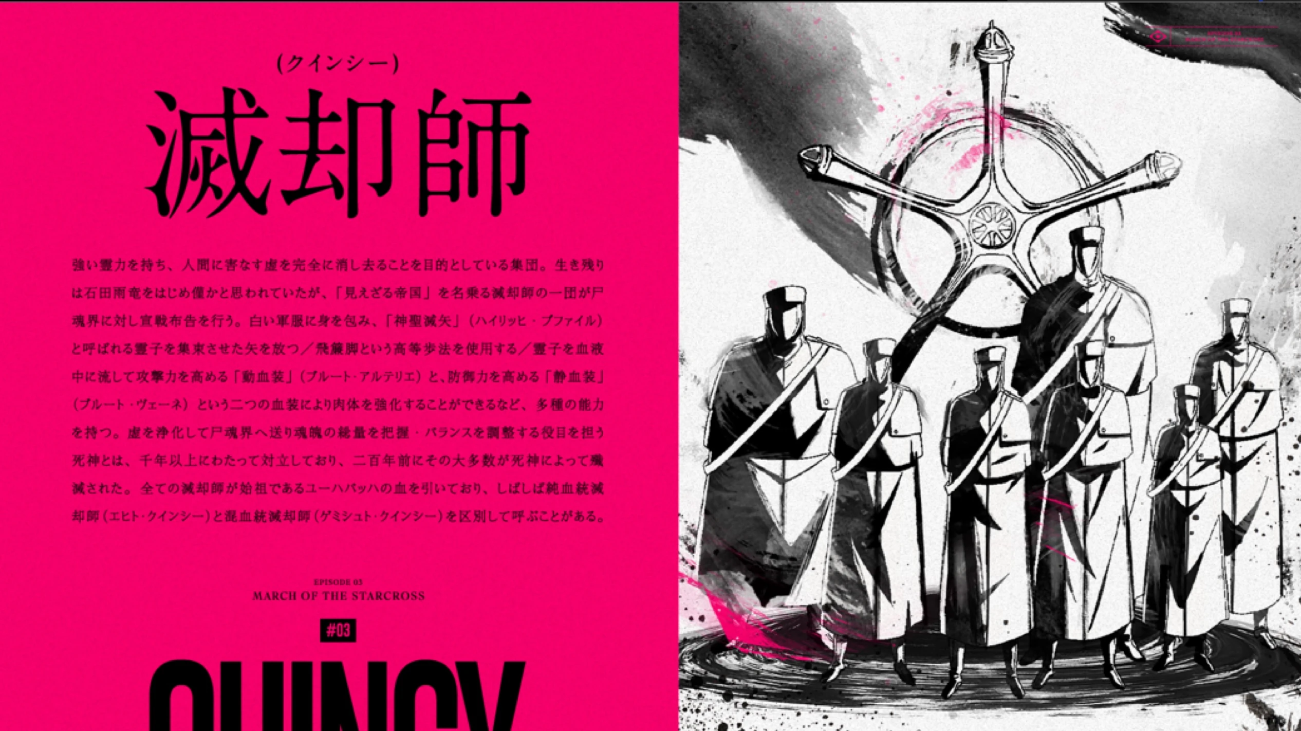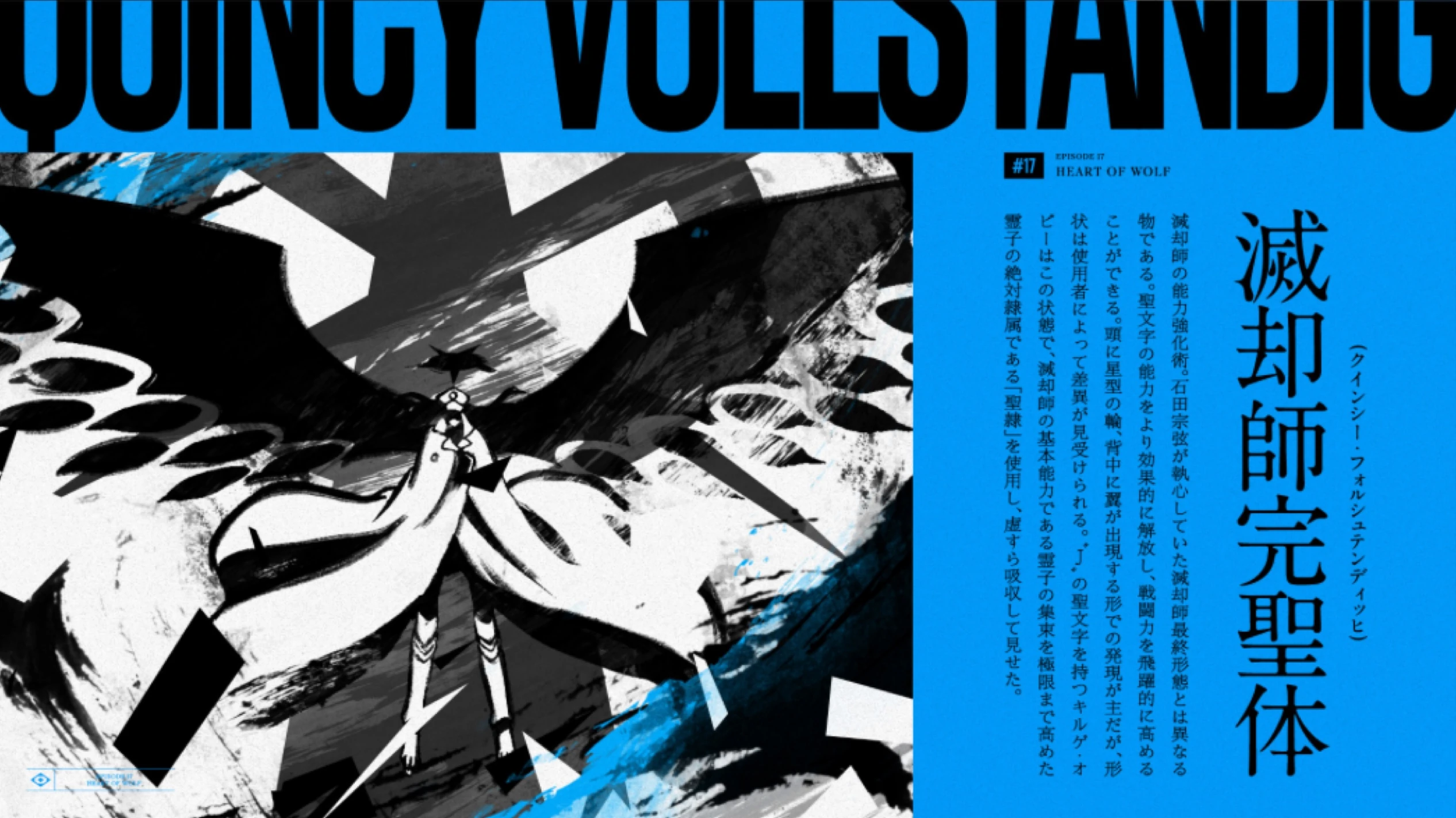 Il y a ceux qui utilisent des armes spirituelles sous la forme de fusils et d'épées qui sont apparemment différents des arcs et des flèches, et ceux qui peuvent activer le "Quincy: Vollständig", qui est une forme de renforcement au-delà de l'imagination.