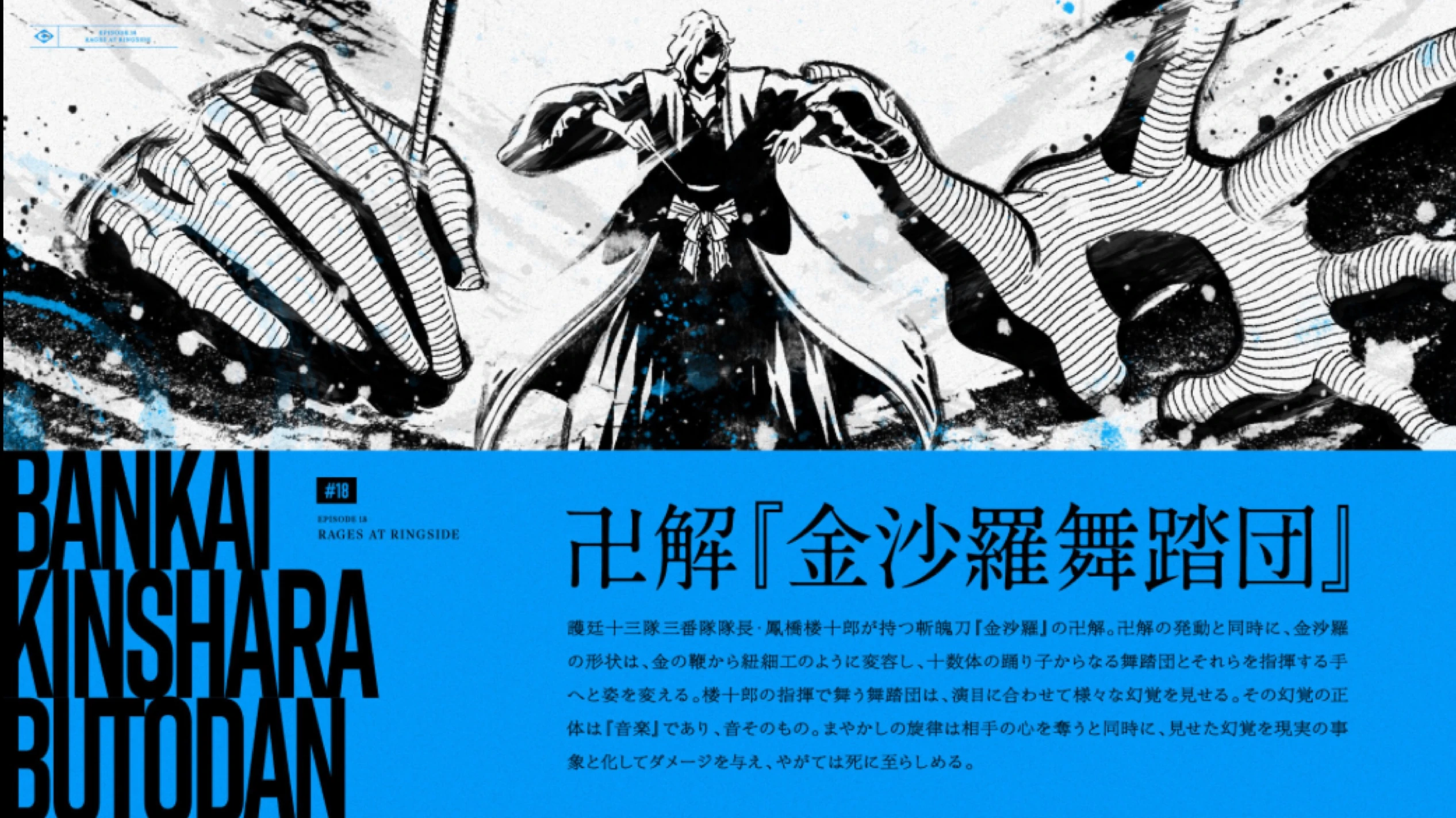 La deuxième forme du Zanpakutō "Kinshara" de Rôjûrô Ôtoribashi, le Capitaine de la 3e Division du Gotei 13.