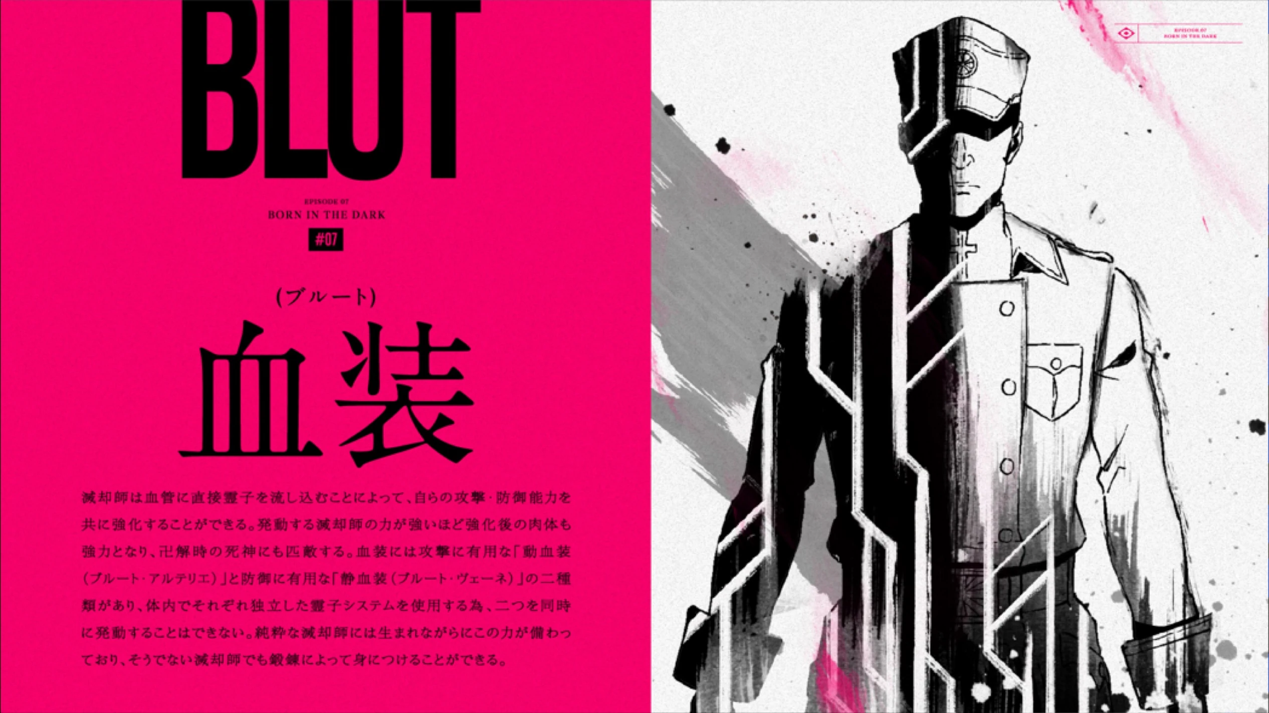 Cette technique se divise en deux catégories : Le Blut Arterie, qui sert à booster l’attaque et le Blut Vene, qui sert à augmenter les capacités défensives.