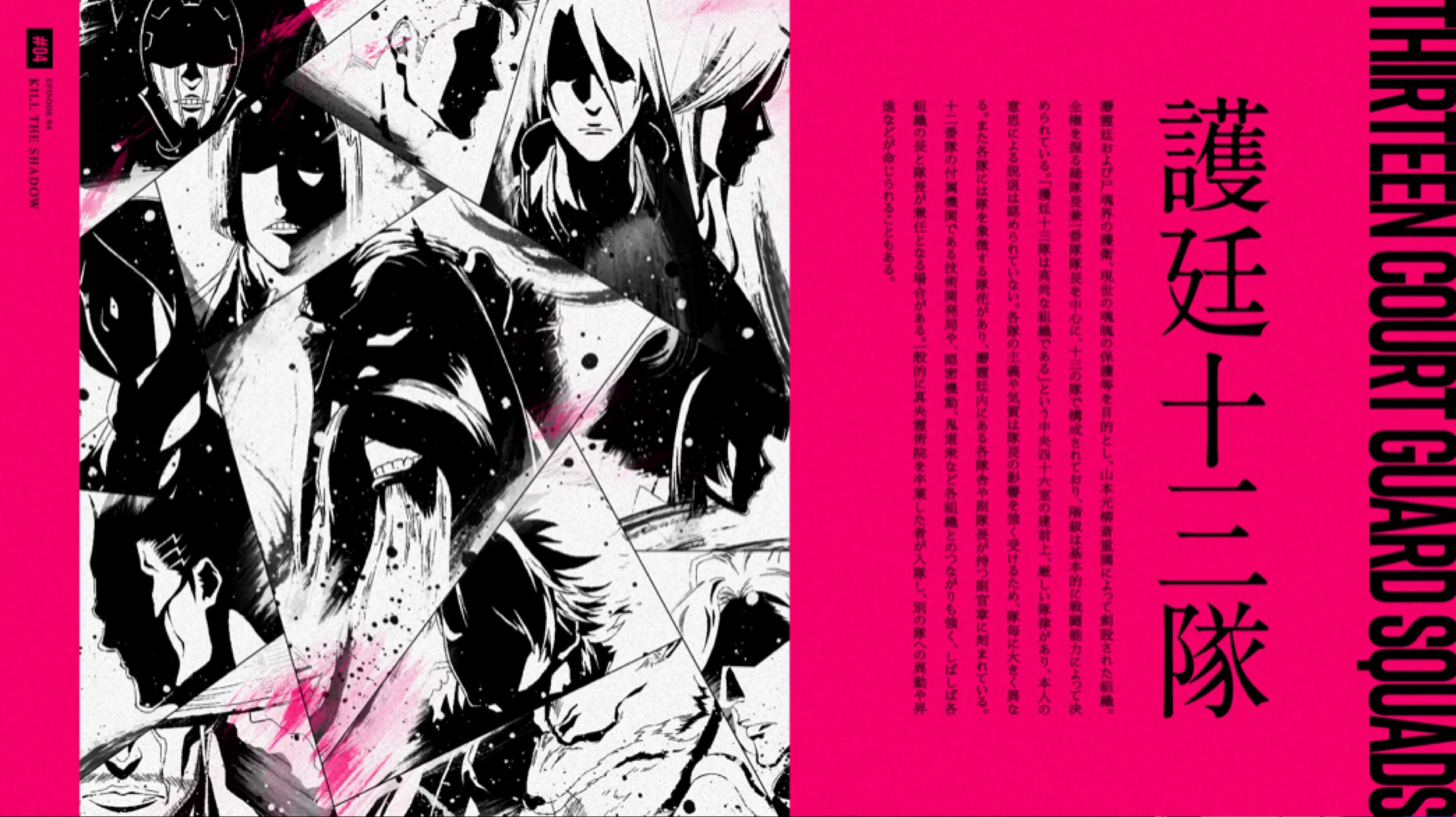 Il existe également des liens étroits avec chaque organisation, comme le Bureau de Développement Technique, qui est une organisation affiliée à la 12e Division, ou encore l’Onmitsukidō et au Corps des Nécromanciens, où c’est souvent l’un des Capitaines qui dirigent l’une de ces organisations.