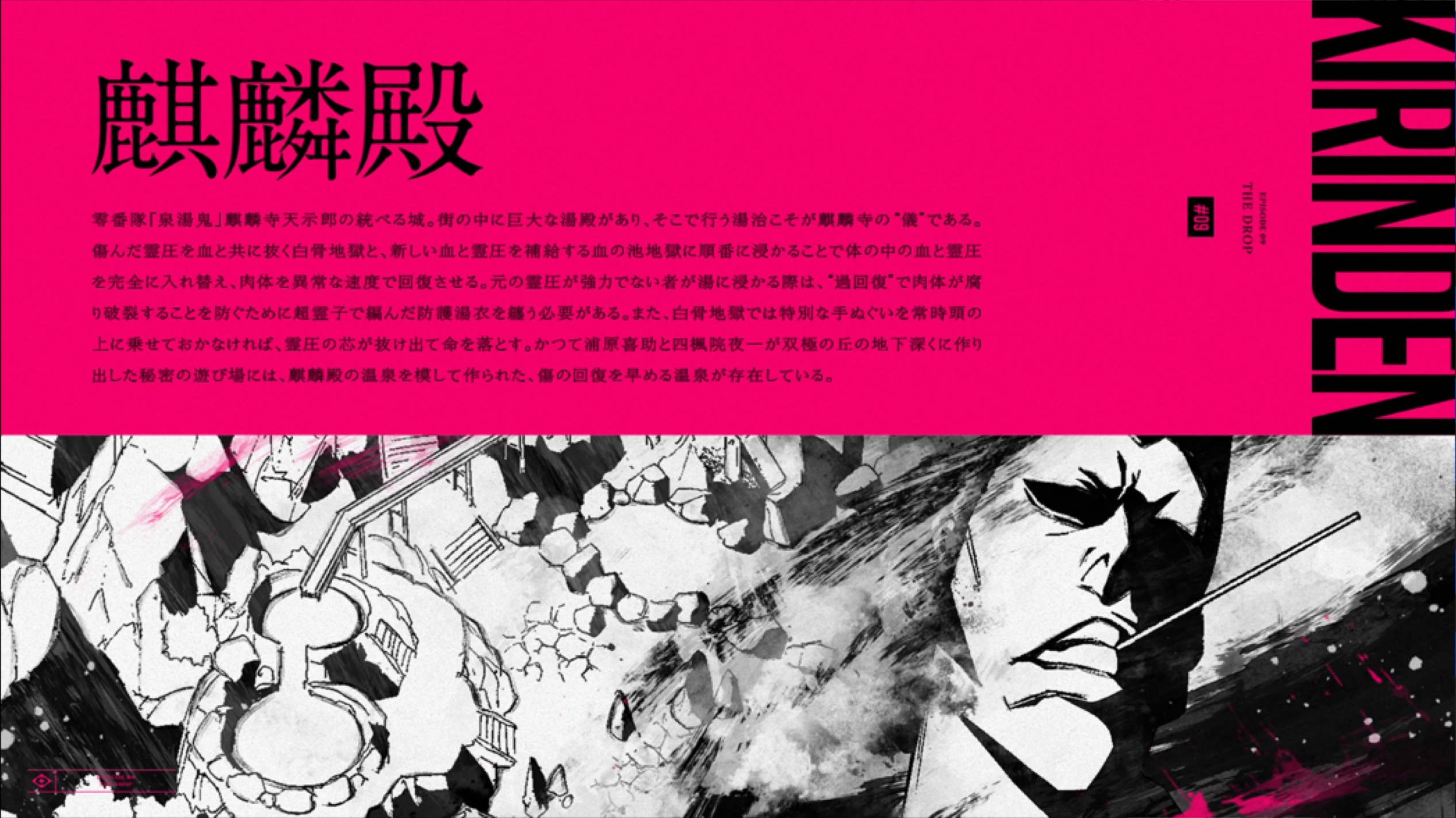 Le château est gouverné par l’un des membres de la Division Zéro, Tenjirō Kirinji, "Sentōki". Il y a une énorme source chaude dans la ville, et la devanture de la source chaude a le kanji "儀" dessus.