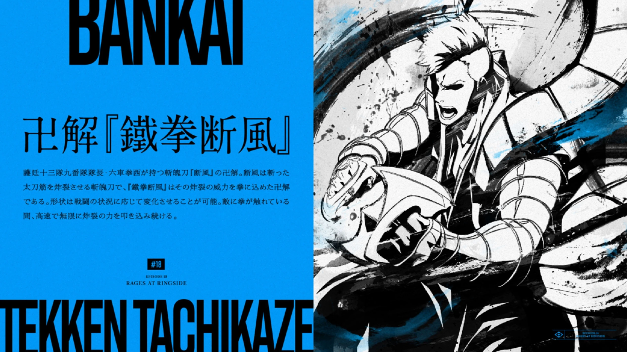 Tachikaze est un Zanpakutō qui fait exploser tout ce qu’il tranche, et "Tekken Tachikaze" est un Bankai qui met la puissance explosive dans le poing.