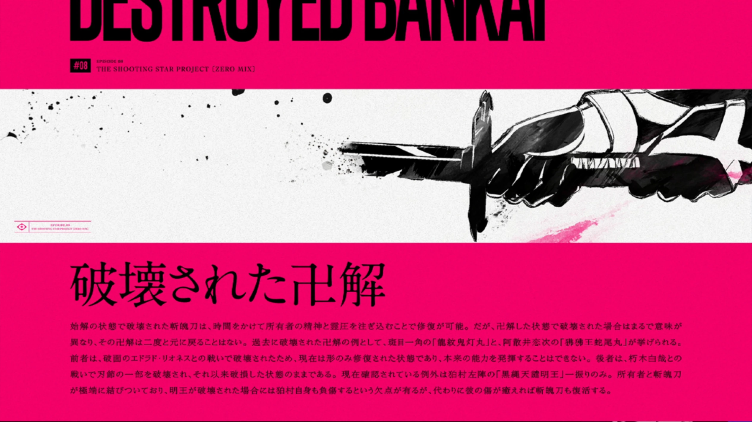 Cependant, s'il est détruit dans son état de Bankai, la signification est complètement différente, et le Bankai ne reviendra jamais à son état d'origine.