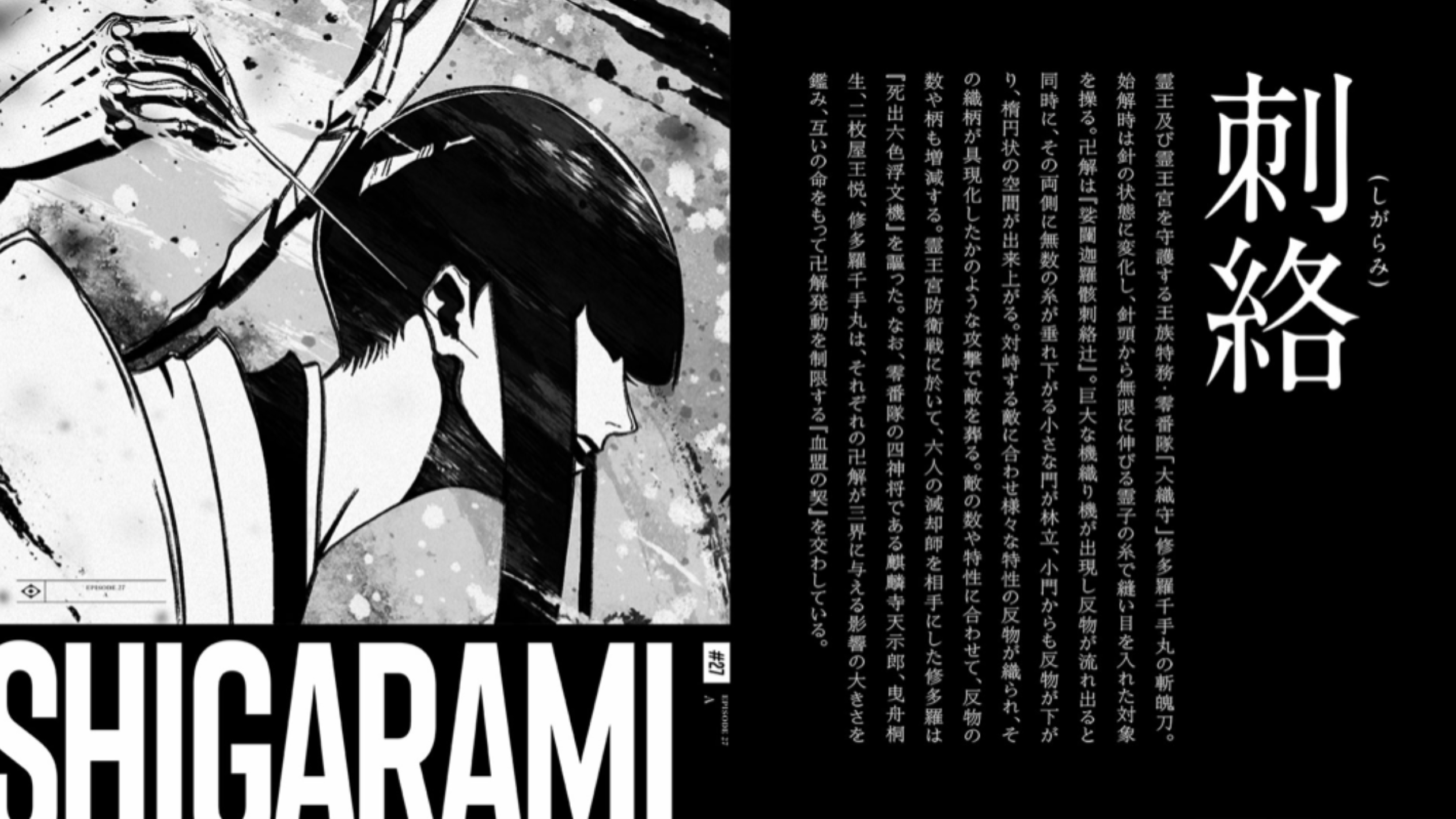 L'épée de Senjumaru Shutara, membre de la Division Zéro et qui possède le titre de Gardienne du grand tissage, dont le rôle est protéger le Roi Spirituel.