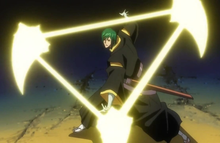 Bakudō # 30. Shitotsu Sansen (嘴突三閃, Triple Coup de Bec Étincelant) est un sort de Kidō.