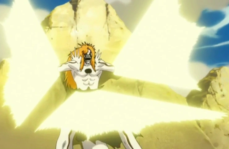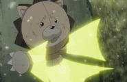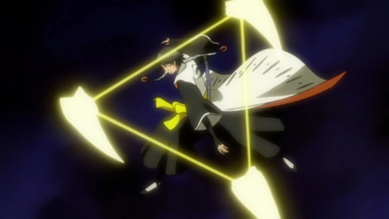 Générant une rafale de crépitement énergie jaune dans sa paume, le praticien utilise cette énergie pour dessiner un triangle jaune inversé, ce qui génère de l'énergie solidifiée sous la forme de petits triangles de ses trois points. Les triangles plus petits font feux et frappent la cible prévue, l'épinglant contre une surface à proximité en claquant dans son corps en trois endroits sous la forme d'un triangle parfait et l'immobilisant. [1]