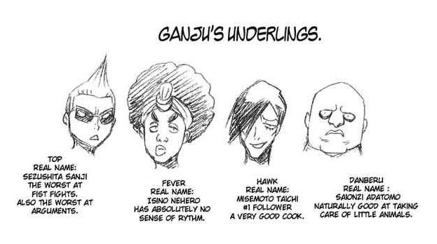 Dwóch członków gangu, Sokół i Gorączka są w kasynie Kusajishi, kiedy wchodzi tam Jin Kariya w celu złożenia mieszkańcom propozycji inwazji na Seireitei. Wymykają się czując kłopoty i idą złożyć raport Kūkaku.