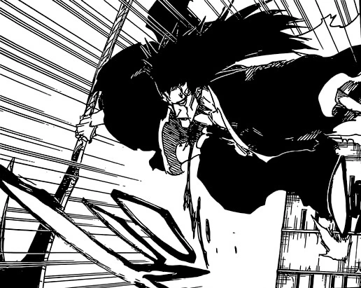Quincy krzyczy przez chwilę z bólu. Przestał, gdyż ręka odrosła jeszcze większa, niż poprzednio. Zaraki chcąc zobaczyć, co się stanie, gdy pochlasta go na kawałki, rusza na niego. Zostaje jednak powstrzymany przez Hitsugaye. Pomiędzy nimi dochodzi do konwersacji. Wykorzystując to, Gerard postawił na nich nogę, lecz zostaje podniesiona przez Zarakiego, który zrzuca go na pobliskie budowle. Kenpachi rzuca się na niego, lecz zostaje odrzucony. Wstając, uwalnia swój Shikai, wprowadzając zdziwienie u kapitanów. Konfrontuje się dalej ze Stern Ritterem. Nacinając ostrze Valkyrie, Zaraki zostaje ranny.[11]