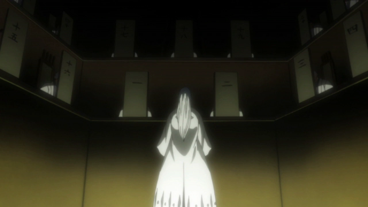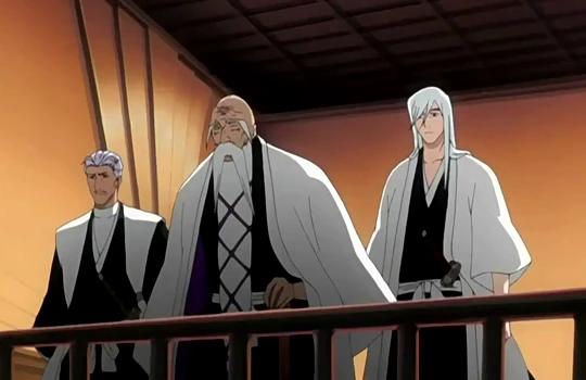 Ukitake postanawia zasięgnąć porady Yamamoto w tej sprawie, a Shunsui narzeka na niewygodne warunki w celi. Kapitan 13. Oddziału stwierdza, że to nie czas na żarty. Niespodziewanie, Ukitake zostaje zraniony przez Kyōraku, a w rzeczywistości jego Reigai. Podróbka Shunsuia stwierdza, że poszło bardzo łatwo i zamierza wykończyć leżącego już kapitana. Powstrzymuje go Reigai Jūshirō oznajmujący, że nie na tym polega ich zadanie; w tej chwili mają ważniejsze sprawy do załatwienia.[73]
