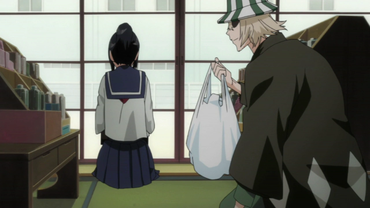 Kiedy Rukia daje wszystkie moce Ichigo, Urahara daje jej specjalne, niewykrywalne Gigai własnej konstrukcji.[31] Kilka dni później, wita Rukię i informuje ją, że właśnie przed chwilą otrzymał dostawę towarów z Soul Society. Dziewczyna kupuje kilka rzeczy do konserwacji swojego zastępczego ciała, pomimo uwag ze strony sklepikarza i oferuje jej badanie kontrolne Gigai. Po tym jak odrzuca propozycję, Urahra pyta się jej o sposób płatności. W odpowiedzi Rukia pokazuje mu Denreishinki chcąc zapłacić punktami Bounty. Urahara twierdzi, że za pokonanie Shriekera otrzyma nagrodę w wysokości 5000 Kan. Chwilę potem sklepikarz informuje, że jej paczka właśnie dotarła[32] i wysyła Ururu, aby wziąć z magazynu. Wraca i prezentuje dozownik na Gikony, ale później Urahara odkrywa, że Ururu pomyliła pudełko, ponieważ w nim był Kon.[33]