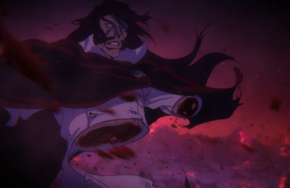 Royd odkłada Kenpachiego by zająć się przybyłym Yamamoto, jednak niespodziewanie przeciwnika atakują trzej Sternritter, NaNaNa Najahkoop, Bazz-B i Äs Nödt. Zostają oni jednak spaleni przez wszechkapitana, a Royd komentuje, że byli głupcami, aby wmieszać się w jego walkę. Patrząc na Yamamoto, stwierdza, że jego oczy wyglądają jakby chciały coś powiedzieć, lecz Genryūsai nie daje mu dokończyć i atakuje. Shinigami stwierdza, że "Yhwach" nic się nie zmienił i nadal ma to niegodziwe spojrzenie. Royd uśmiecha się i mówi Yamamoto, że postarzał się, jednakże sposób wyrażania przez niego wściekłości przypomina mu stare czasy. Yamamoto atakuje, lecz Royd unika ataku i tworzy miecz. Genryūsai twierdzi, że czekał na ten moment i teraz roztrzaska jego ciało, krew, miecz i duszę na kawałeczki. Płomienie znikają, a Yamamamoto uwalnia Bankai, Zanka no Tachi.[4]