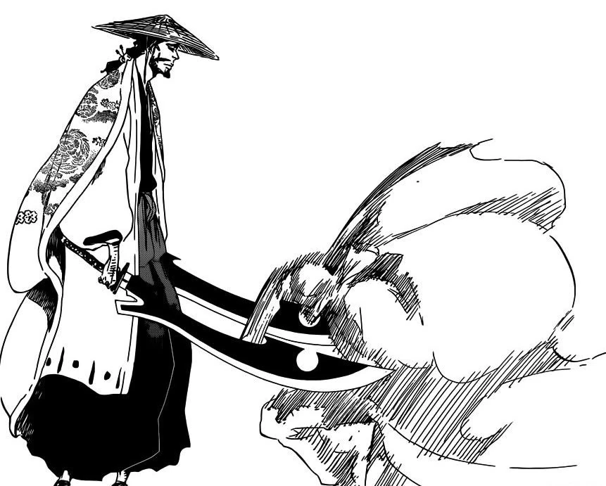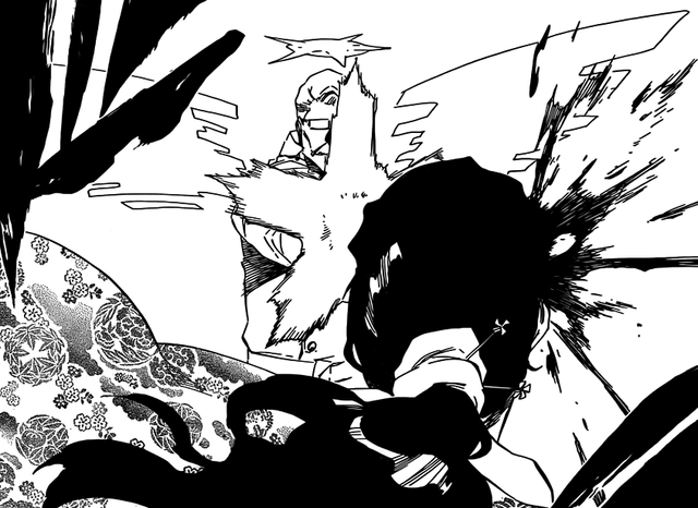 Kyōraku trafiony przez wroga, po reakcji na zranienie Yamamoto