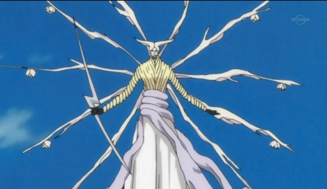 - Resurrección : Seu comando de liberação é "Crescer" (生 い 上 れ, oiagare ). Em seu estado de liberação, o lado direito do corpo de Rudbornn fica envolto em galhos que vão até sua cintura, onde se dividem em raízes que se alargam em qualquer um dos lados de Rudbornn. Quatro galhos em forma de raio crescem na parte superior de seu braço direito, com crânios semelhantes aos usados por seus subordinados pendurados em cada um. Ele também carrega um galho ou vara em forma de raio. Ele pode crescer mais seis desses ramos (totalizando dez) que se espalham para o outro lado de seu corpo.