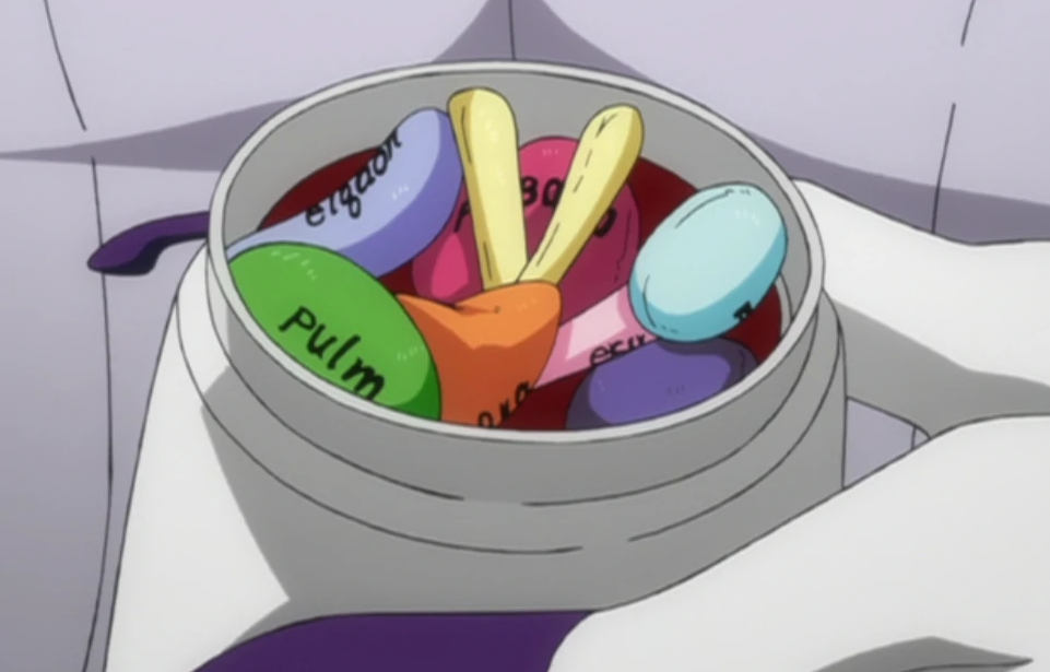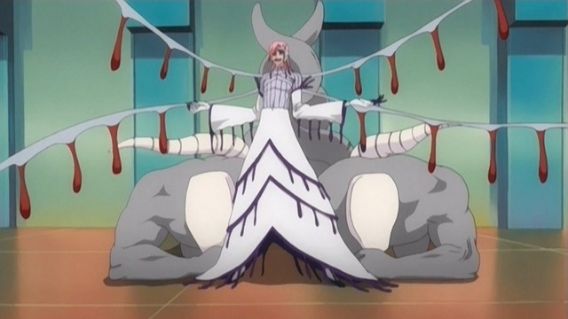 Szayel diz que ele é um tolo pensando que algo aconteceria se ele rasgasse a boneca ao meio. Ele então mostra que o que realmente queria fazer era chegar às partes do corpo dentro da boneca. Ele pega um pequeno pedaço que diz "estômago" e o quebra, fazendo Uryū tossir sangue. Enquanto Renji o ataca com raiva pelo que fez, ele também é "comido" por uma das asas de Szayel. Szayel afirma que todo mundo se surpreende com uma pequena coisa. Ele continua dizendo que Humanos, Shinigami e Quincy são todos iguais e se há alguma razão para eles serem mortos por Aizen é por causa de sua inferioridade.