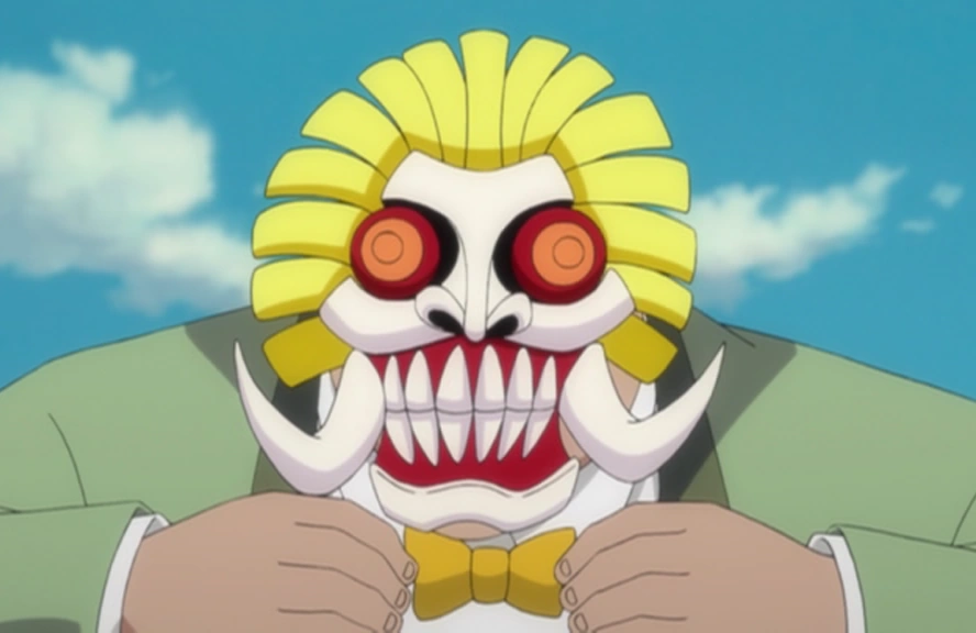 Маска пустого: Его маска была впервые замечена как простая с выпученными глазами, хотя она ещё не была полностью сформирована. Позже она была полностью раскрыта, когда вайзарды пришли сражаться с Айзеном. Она сильно напоминает традиционную балийскую маску демона, с клыками и выступами сверху. Ряд перьевых шипов также торчат из верхней части маски, подобно головному убору индейцев.[26]