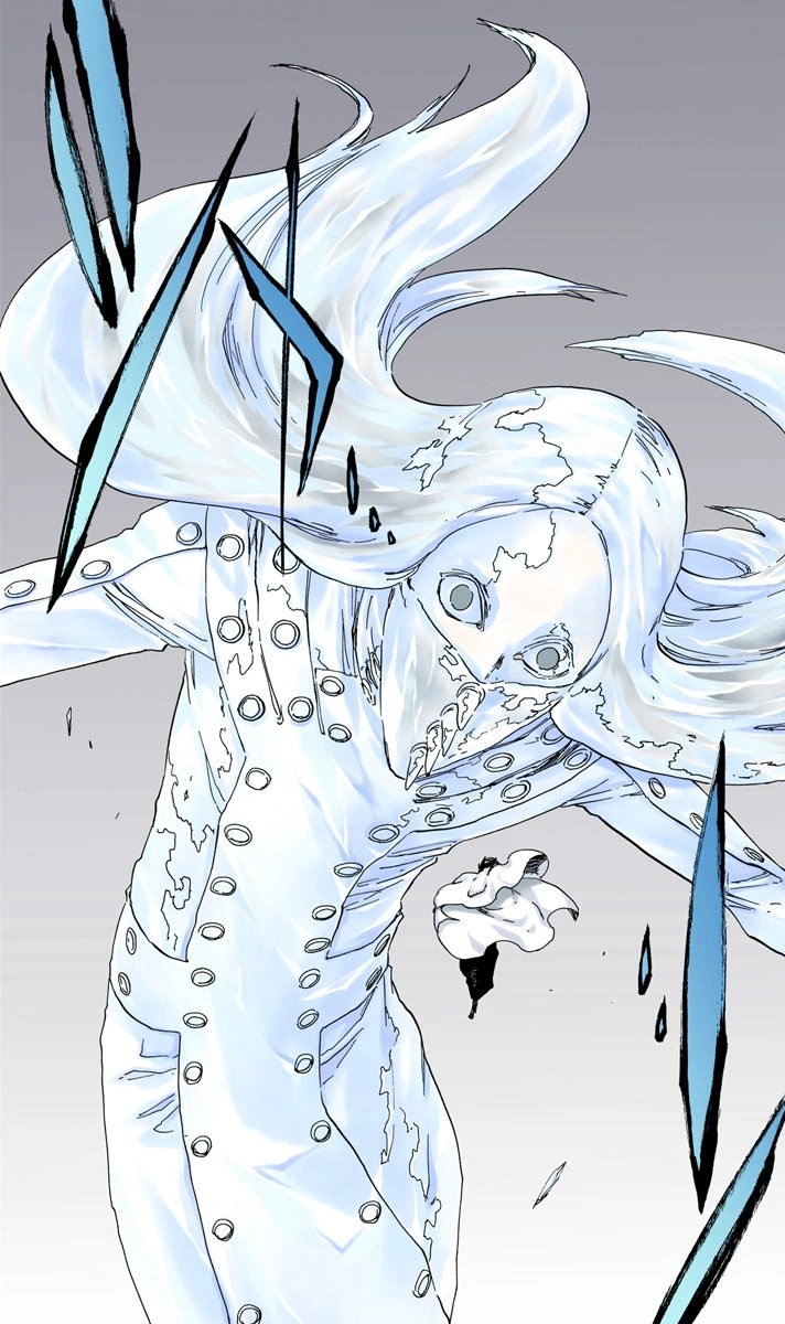 Эс заявляет, что никто не может сопротивляться страху, что побуждает его противника пригласить его снова напасть на нее. Эс снова нападает на Рукию, но его шипы останавливаются и замораживаются. Затем Эс слушает, как Рукия объясняет, как ей приходилось бежать раньше, чтобы ее тело успело приспособиться к истинной силе Содэ- но Шираюки . Сказав, что замораживание шипов не остановит страх, потому что он проникает не через рану, а скорее через первое прикосновение, Эс продолжает говорить о том, что все живые существа чего-то боятся, а смерть - это то, чего все боятся в конце концов. это означает, что пока Рукия жива, она будет чувствовать страх.