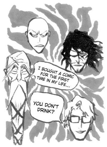 I drank surrounded by men like them. It was pretty intense, but it was fun. -Tite Kubo |