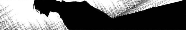With Aizen engulfed in a cloud of dust by the impact of the segments, Ichigo seizes the opportunity and rushes forward as he swings his sword, only for a smiling Aizen to block it with his left index finger before slashing his Zanpakutō deeply through a shocked Ichigo's midsection. The lower half of Ichigo's body swings back as the deep cut begins gushing blood, and after observing that he must have miscalculated if Ichigo is not in two pieces, Aizen leaves Ichigo to fall to his knees and slashes Renji through the left side of his upper torso, causing him to collapse in disbelief as well, before approaching Rukia and grabbing her by the collar around her neck as he tells her to get up.