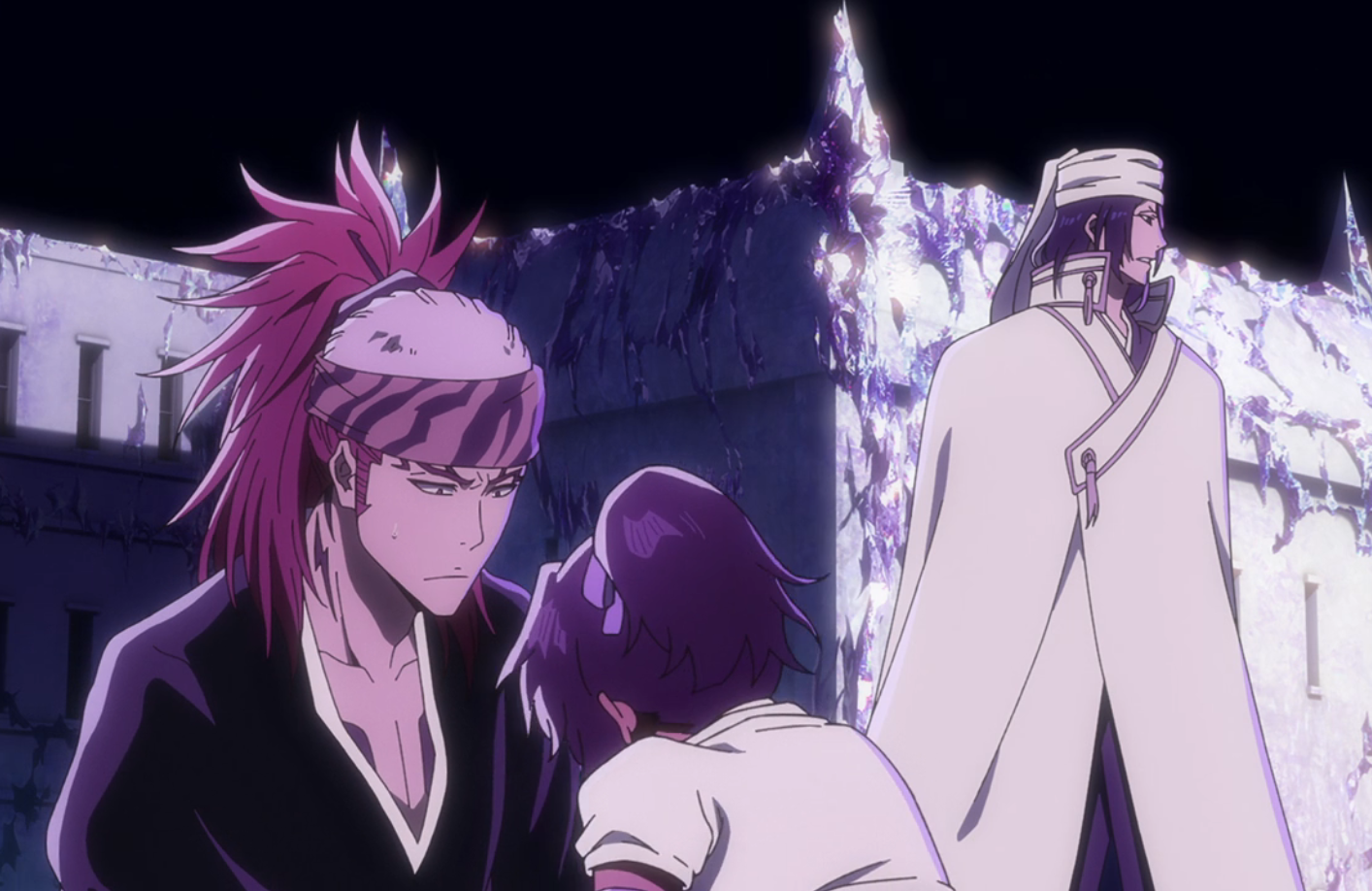 As Marechiyo ponders this, Shinji praises Hinamori for healing them and laments her inability to fix SuĂŹ-FÄng's sharp tongue, leading Hinamori to frantically apologize to the latter after initially acknowledging this. With SuĂŹ-FÄng wondering what the tremors and change in the air mean, Shinji claims there is no point in wondering and threatens to leave SuĂŹ-FÄng behind if she does not stop talking, only for a dismissive SuĂŹ-FÄng to depart with Shunpo, leaving Shinji to complain about her going on without them. Simultaneously, in an intensive care ward, 13th Division Captain JĆ«shirĆ Ukitake applies KaidĆ to 11th Division Captain Kenpachi Zaraki.[7]