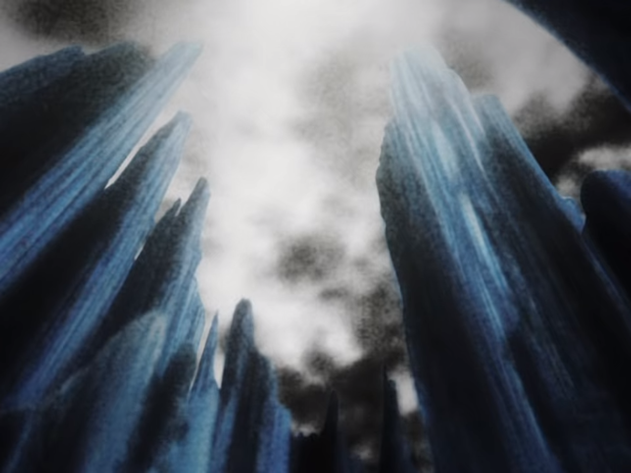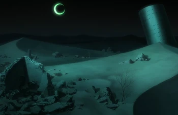 An unchanging night covers the sky, an endless white desert covers the ground. The tree-like objects are not plants, but rather quartz-like minerals.[1]