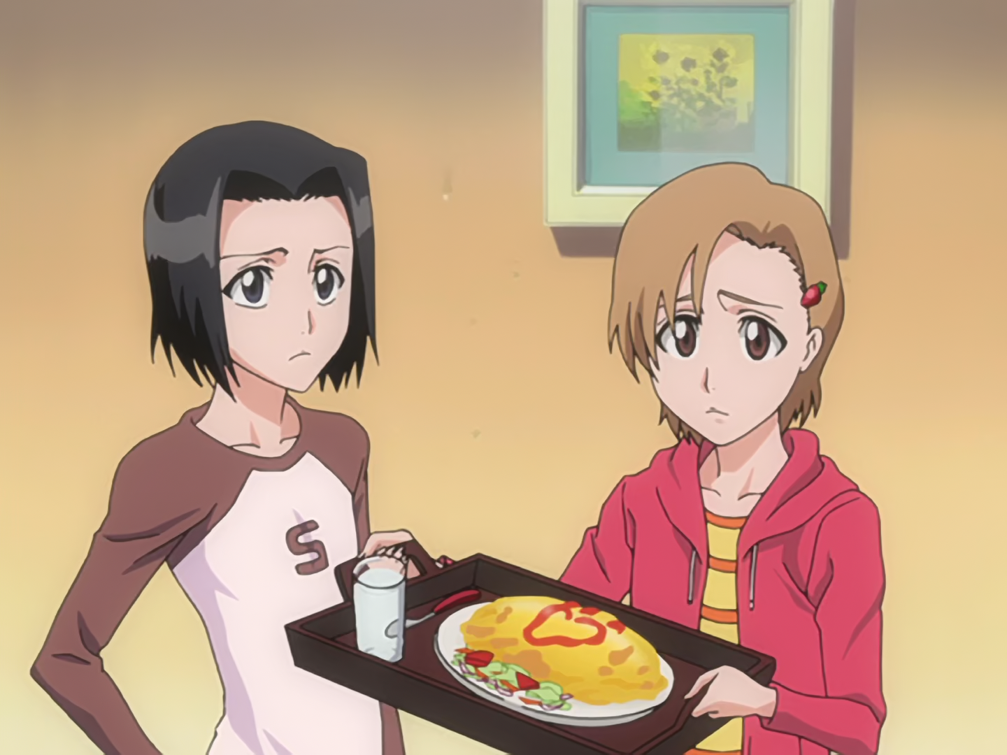 Ichigo stays away for a month and both Karin and Yuzu miss him greatly during that time. When he returns, wounded, he is put to bed to rest as Rukia watches over him. Yuzu wants to eat her dinner in Ichigo's bedroom but Karin reminds her that their brother needs to rest and the two bicker over it. Rukia overhears them and, when she opens the door, Yuzu asks if they can eat their dinner with Ichigo. Rukia lets them do so, stating that Ichigo would like that and the two fall asleep on the floor after finishing their meal, staying there all night.[61]