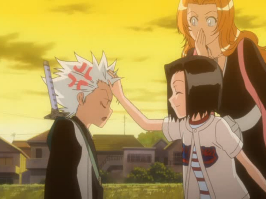 She also encounters Tōshirō Hitsugaya while he is stationed in the World of the Living. Upon seeing his talent in soccer, she manages to convince him to join her team and help them win the match. After their victory, she realizes that he too is a Shinigami after he saves her from a large Hollow and easily purifies it. She tries to find out where her missing brother is but Hitsugaya reveals that he is also in the dark with regards to Ichigo’s Visored training. Despite this, he reassures her that Ichigo will be alright.[60]