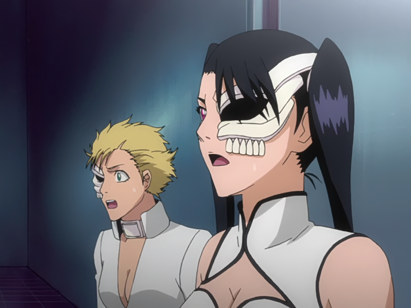 Later, Menoly is petrified when Ulquiorra arrives in Orihime's destroyed room.[9] She silently allows Loly to pretend that Grimmjow was the sole person responsible for the destruction in Orihime's room and the Espada leaves them to confront Grimmjow.[15]