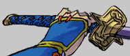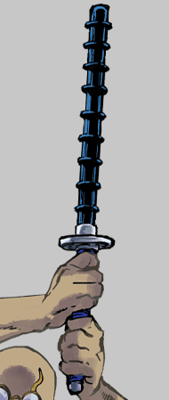 In its sealed form, Danjirō's Zanpakutō took the form of a katana with a blue handle and a golden, rectangular tsuba emblazoned with a curling design on the flat side and jutting outward with a small spike on each long edge, as well as a blue scabbard.[5]