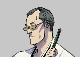 Ginjirō Shirogane was the lieutenant of the 6th Division before Renji Abarai. He resigned from his position to run the sunglass store: Gin Tonbo (銀蜻蛉, The Silver Dragonfly). He began doing this work on the side while he was a lieutenant, but when he started getting a lot of business, he resigned from the position.[12] The Shinigami Men's Association get all their sunglasses from this store, as does Renji. Renji also enjoys a discount at the store for being Ginjirō's replacement, but the prices at his store are so high that even with the discount, Renji has difficulty purchasing the goggles he wants.[12]